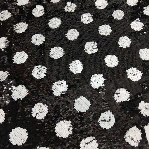 2 Sided Black and White Sequin Fabric | Reversible Dot Design (120cm Width) | Wholesale