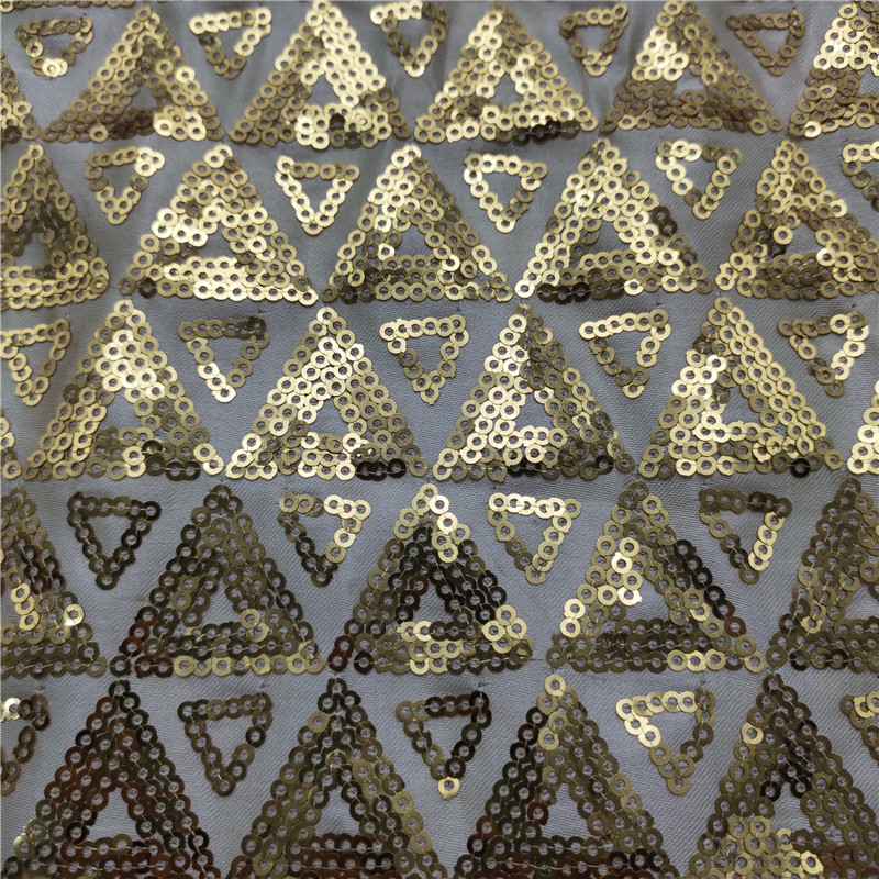 Our matte sequin fabric gold is made from 5mm eco-friendly PET sequins, embroidered on soft, stretchable mesh base fabric and create many small triangle pattern. Ideal for leotards, Elsa dresses, bridal gowns, costumes, and more. Available in 120-125cm width, with fully customizable colors, sizes, and designs.